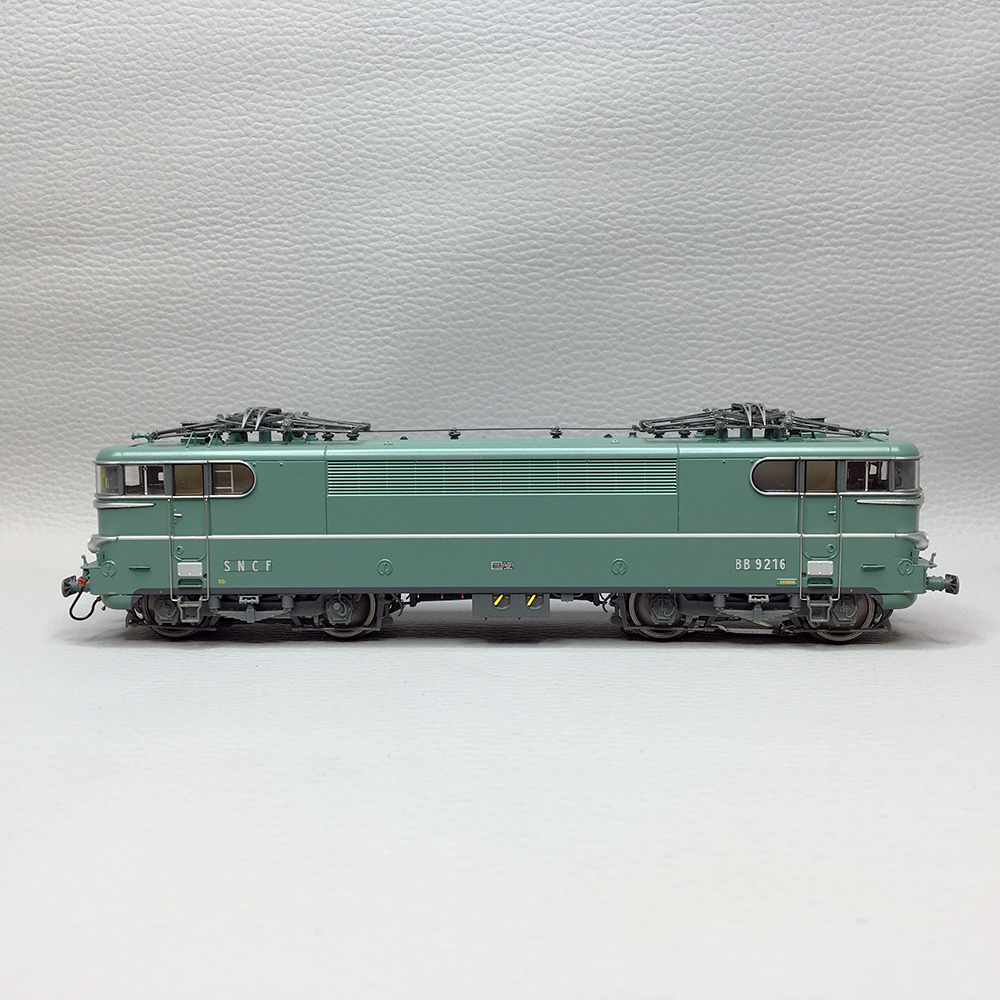 - Modèle réel : La locomotive électrique BB 9216 en livrée verte 313 jupée appartient à la série BB 9200 mise en service dès les années 1950 pour la traction des trains de voyageurs sur les lignes électrifiées en 1,5 kV continu. Son design reconnaissable inclut une grande persienne et un petit numéro en façade. Dépot : Avignon