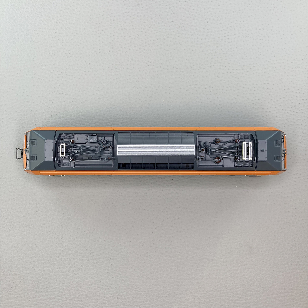 Livrée gris et orange, logo Casquette.