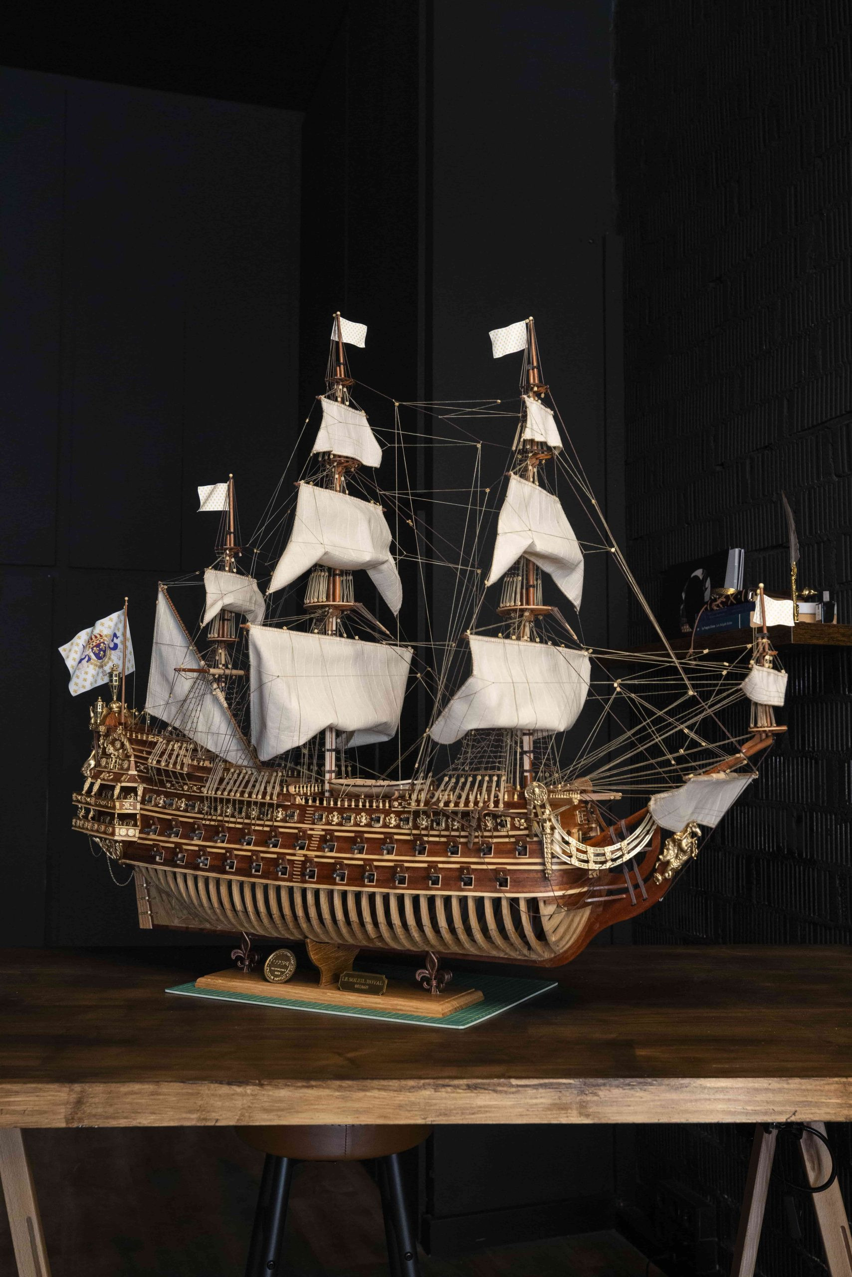 Issu du modélisme historique français (modèle d'arsenal), Le Soleil Royal reproduit fidèlement la manière dont le navire original a été construit, en suivant les plans et techniques des XVIIe et XVIIIe siècles. Charpente visible et bois noble. Édition limitée à seulement 669 exemplaires numérotés dans le monde.