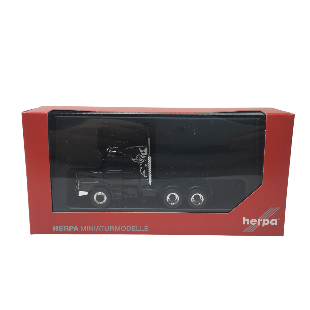 Tracteur routier Scania Hauber 142, 3 essieux 6x4, noir, 1984 - HERPA 319416 - HO 1/87