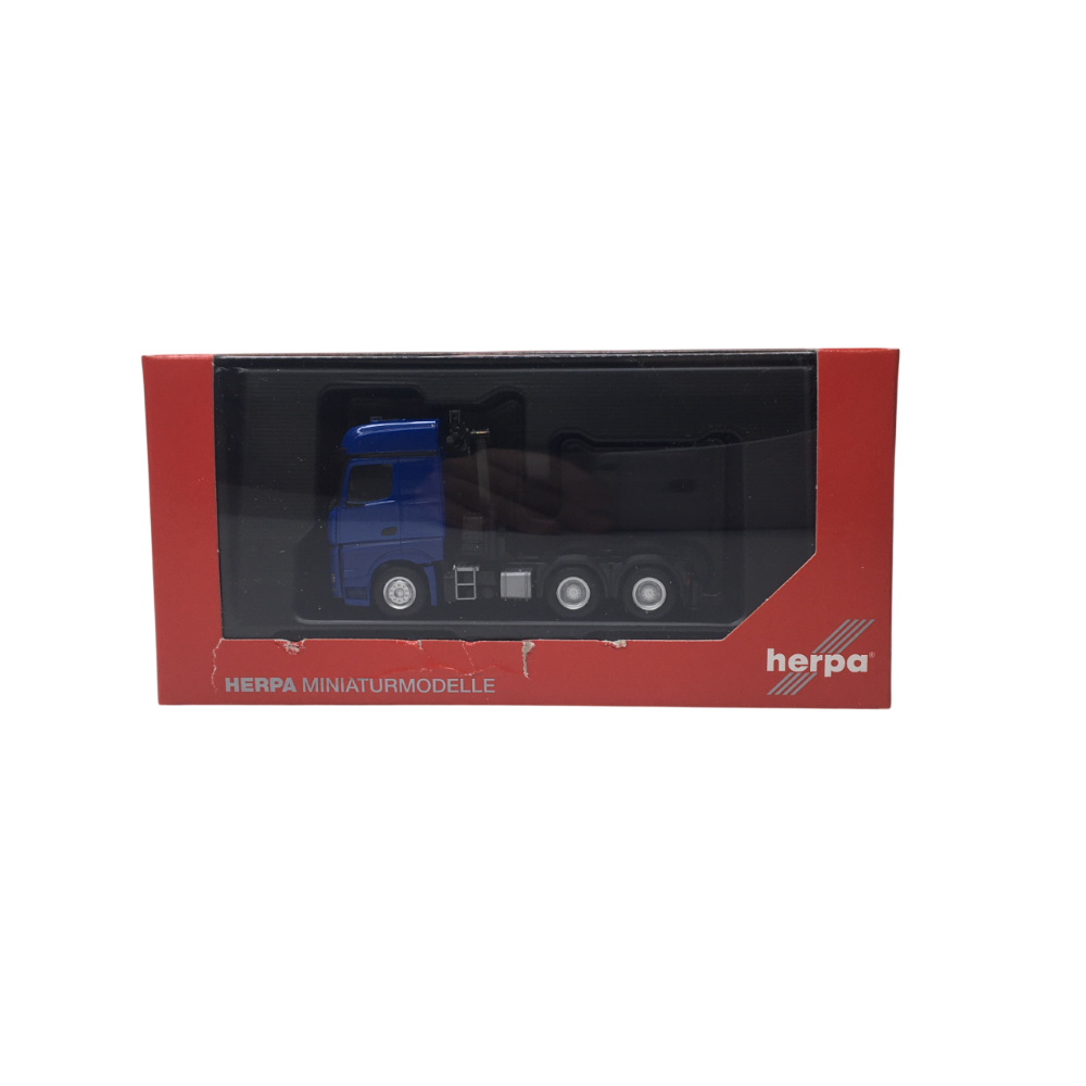 Tracteur porteur, Mercedes-Benz Arocs 18, bigspace, 3 essieux avec grue (6x4), bleu - HERPA 318747 - HO 1/87
