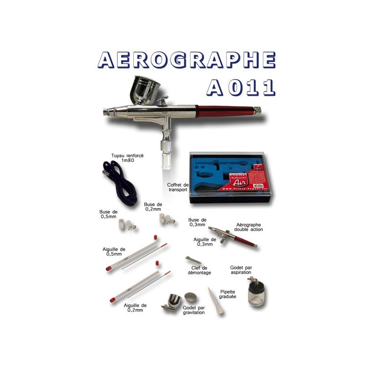 - Équipé de 3 buses et 3 aiguilles interchangeables (0,2 mm, 0,3 mm et 0,5 mm) pour une grande flexibilité.