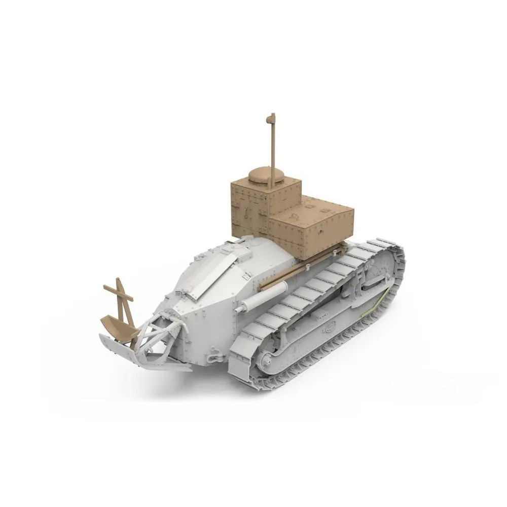 Cette maquette reproduit un Char FT T.S.F, une variante du Renault FT devenu un véhicule de commandement et de communication français. Il facilitait la coordination entre les unités blindées, l'artillerie et l'infanterie en servant de centre de communication mobile.