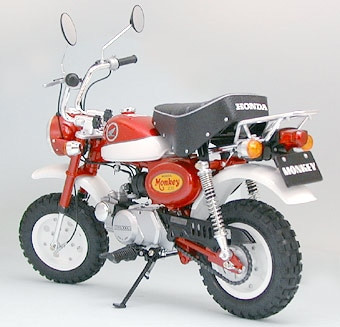 Cette maquette à l'échelle 1/6 reproduit le Honda Monkey. Modèle commémoratif sortie en 2000 avec des roues plus grandes de 8 pouces et une suspension améliorée de la Honda Monkey, une moto qui a contribué à définir le genre de la moto de loisir en 1967.