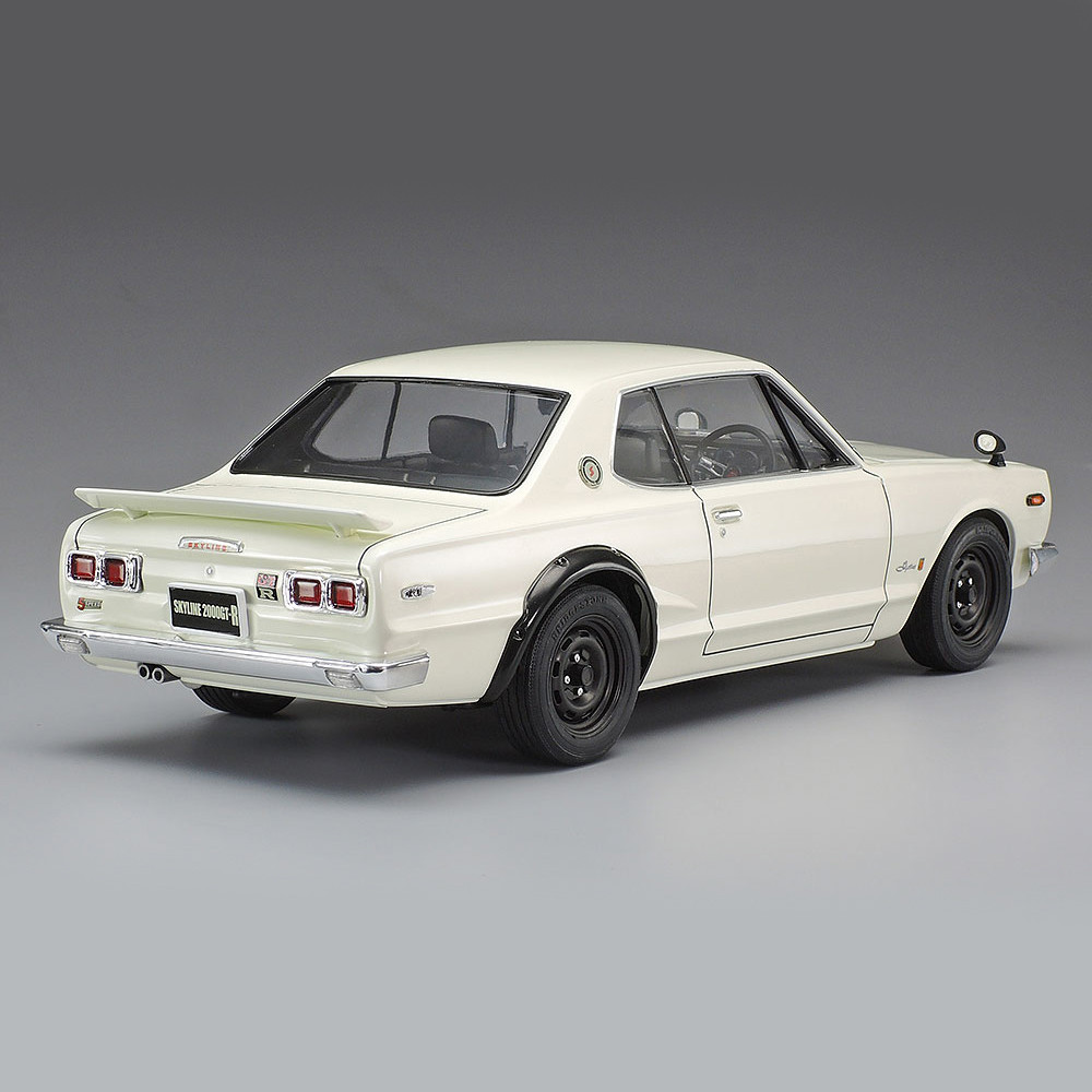 Cette maquette à l'échelle 1/24 reproduit la Nissan Skyline 2000 GTR Hard Top, de la 4e génération de Skyline sortie en février 1969. En octobre 1970, elle subit quelques améliorations esthétique mineures et fut dotées d'une version 2 portes à toit rigide et empattement raccourci. Véritable bolide de course, la GTR remporta 50 victoires en courses nationales de voitures de toursime à la fin des années 1960 et au début des années 1970.