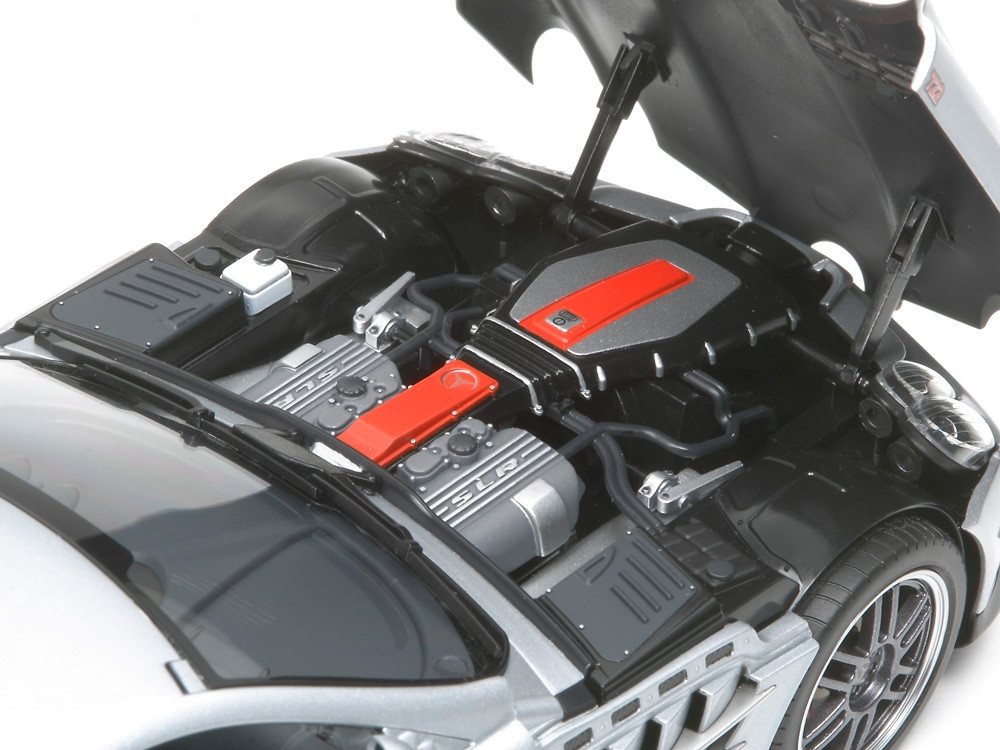 Cette maquette à l'échelle 1/24 reproduit la Mercedes-Benz SLR McLaren. La 300 SLR a remporté la course d'endurance italienne Mille Miglia, puis d'autres victoire pour dominer de manière décisive la saison de course 1955. La voiture portait le numéro "722", repris dans le nom de la supercar Mercedes-Benz SLR McLaren 722 Edition , annoncée au mondial de l'auto de paris 2006. Cette édition exclusive représente le summum des performances de conduite, un niveau que 150 heureux propriétaire à travers le monde pourront découvrir.