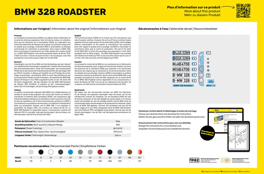 Ce starter kit reproduit la BMW 328 roadster, dont le prototype fut présenté en 1936. Équipé d'un moteur de 80cv, la BMW 328 roadster a été commercialisé dès février 1937 jusqu'au début de l'année 1940 avec un total de 464 exemplaires construits. Ce fut l'une des voitures de sport de rêve de son époque.