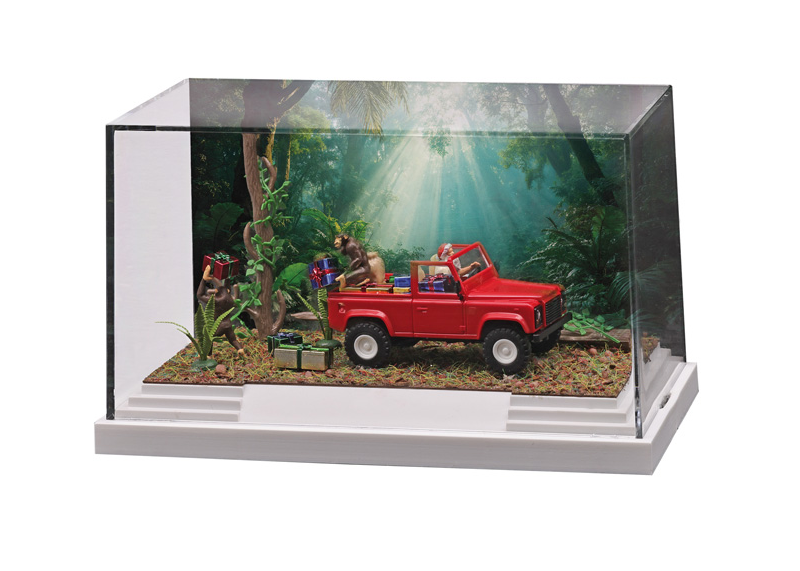 Mini diorama de Noël, Land rover Defender, rouge - BUSCH 7626 - HO 1/87