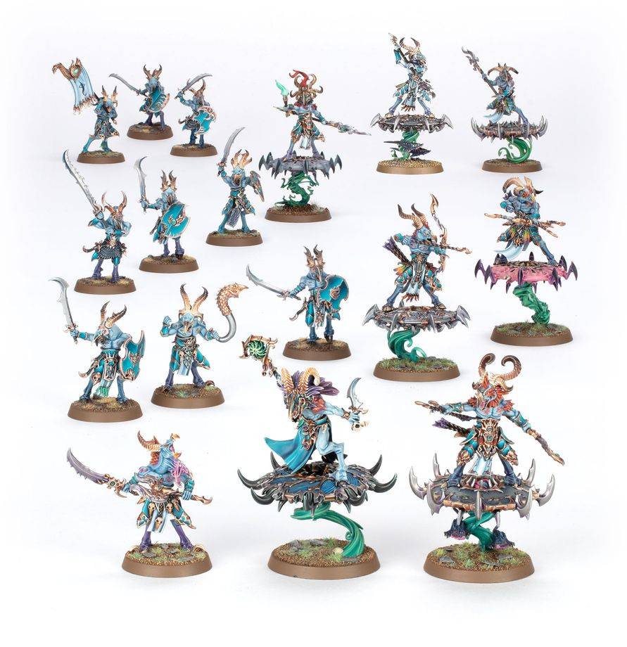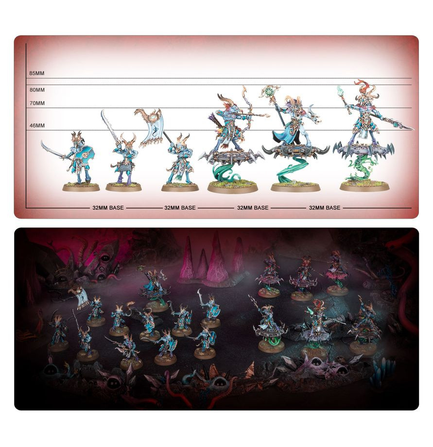 Cette boîte permet d'assembler 17 figurines en plastique de Disciples de Tzeentch: