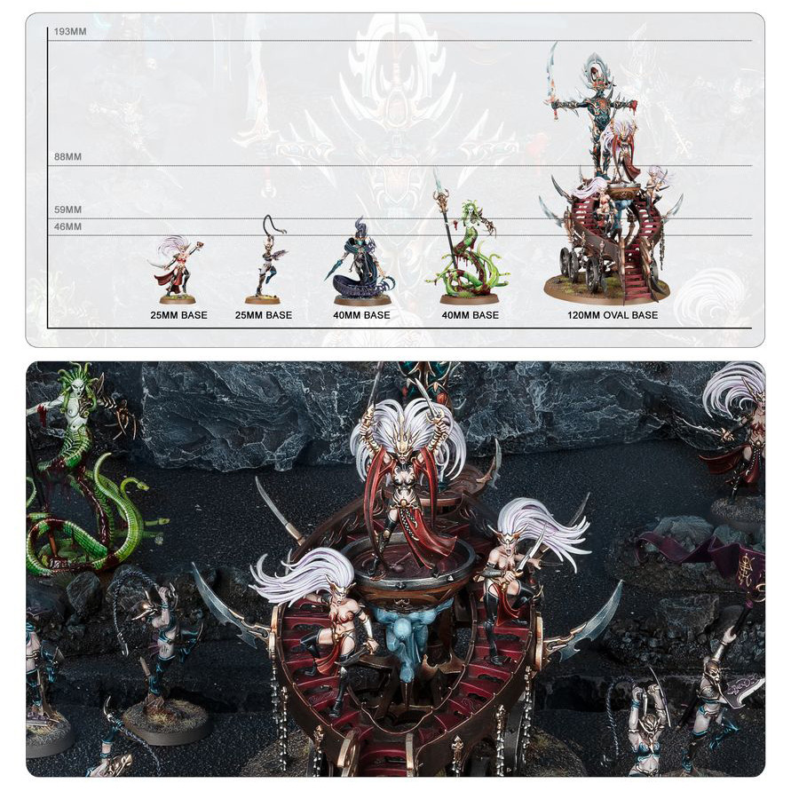 • 1x Reine du Massacre sur Chaudron de Sang, 1x Reine Matriarche et 1x Méduse Incarnate (qui peuvent être assemblées comme 1x Reine Matriarche sur Chaudron de Sang, 1x Reine du Massacre et 1x Méduse Incarnate, ou comme 1x Sanctuaire Incarnat, 1x Reine Matriarche, 1x Reine du Massacre et 1x Avatar de Khaine)