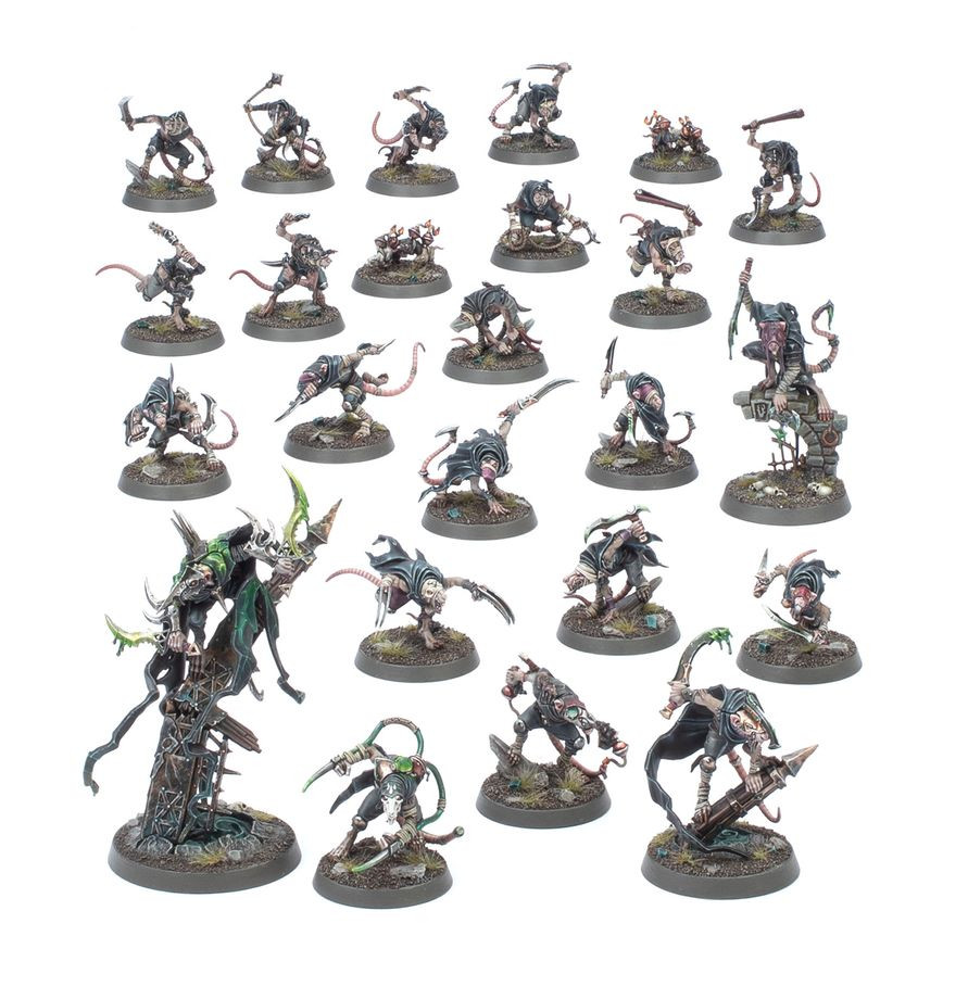 Les ruines de Gardebraise, la Cité de Cendre, résonnent du choc de l'acier. Sous le commandement de l'intrépide Jorvan Kreel, des soldats endurcis des Guildes Franches luttent pour s'emparer de réserves de braisepierre magique, une ressource cruciale dans la guerre pour les Royaumes Mortels. Mais les ombres cachent un terrible danger: les Skavens des Clans Eshin, de vils hommes-rats experts en assassinat. Ils sont accompagnés du tristement célèbre Maîtremort Crixxit, qui vise désormais Kreel. Le décor est planté pour un combat désespéré dans une cité morte.