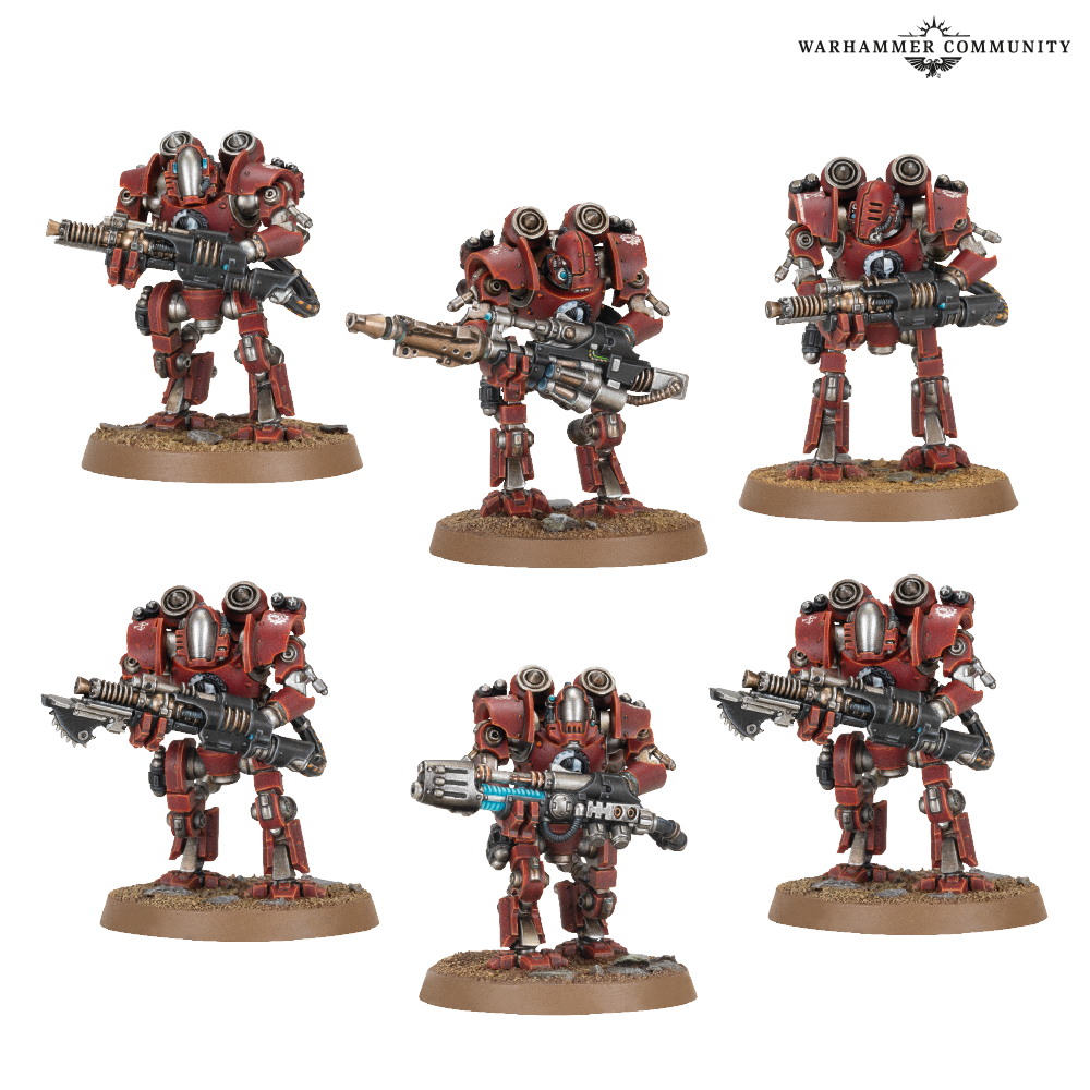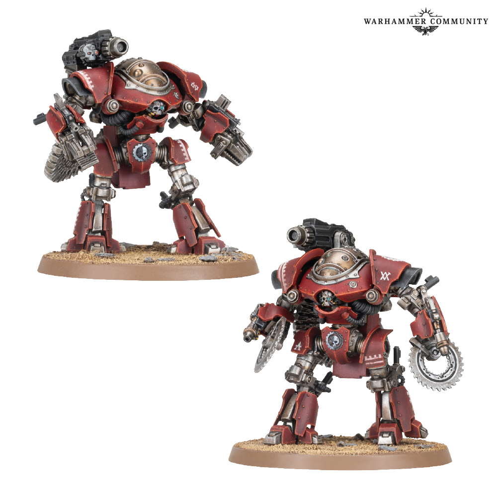 2 Automates de combat Castellax ajoutent un peu de puissance de frappe à votre formation. Ces robots de guerre sont bien plus grands qu'un homme et sont armés de 2 chargeurs-chocs semblables à des griffes. L'un peut être doté de lames circulaires, et vous avec le choix entre des bolters ou des lance-flammes intégrés pour chacune de ces armes. Comme options d'arme montée sur l'épaule, vous trouverez 2 canons à bolts Maulers, ainsi qu'un canon Darkfire et un multi-fuseur. Des articulations de bras différentes et l'option d'avoir les griffes ouvertes ou fermées vous permettent de personnaliser davantage vos figurines.